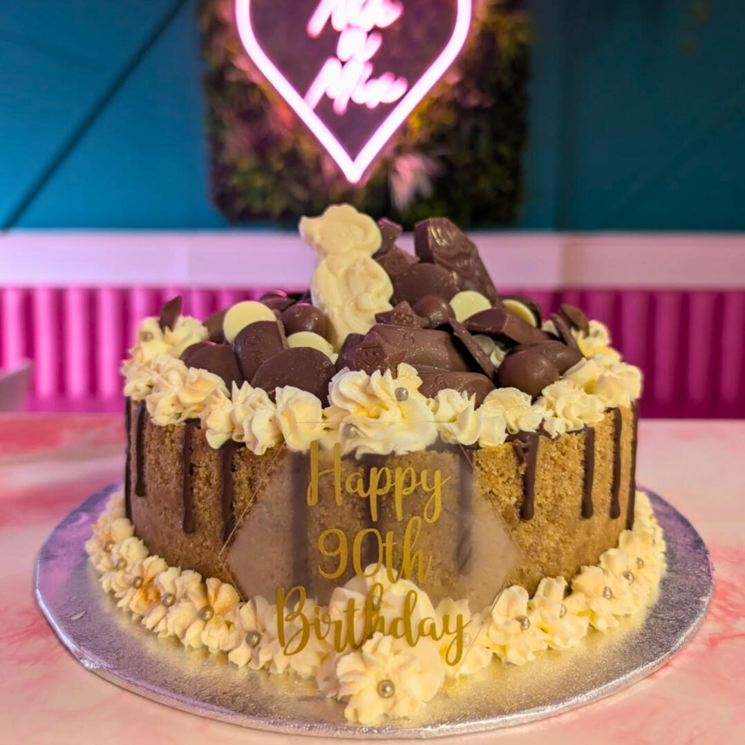Nik can create stunning celebration stacks, tray bakes, cheesecakes, or platters for any occasion, and each is fully customisable with your choice of treats, buttercream, toppings, and a personalised acrylic topper!