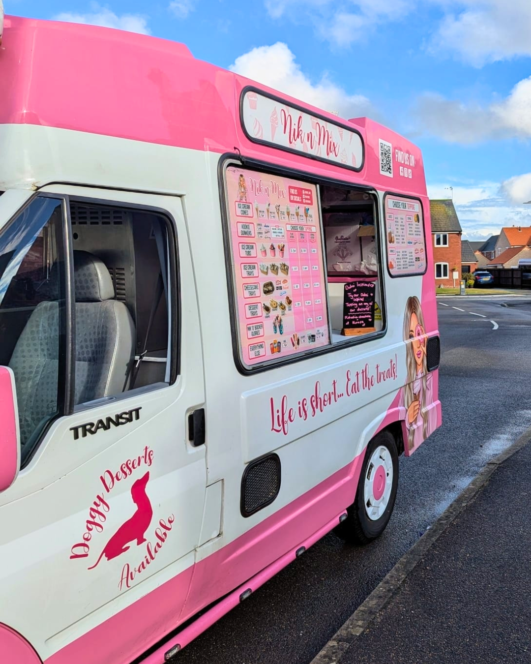 In addition to ice cream cones, tubs, and trays, we offer cheesecakes, brownies, donuts, cookie dough, Belgian waffles, milkshakes, the famous Nik n Mix Kookie Dunkers, a full Winter Warmer menu consisting of fruit crumbles, sticky toffee puddings, school cake, and warm brownies - all with ice cream or hot custard, AND an irresistible range of Nik n Mix Build Your Own options!
